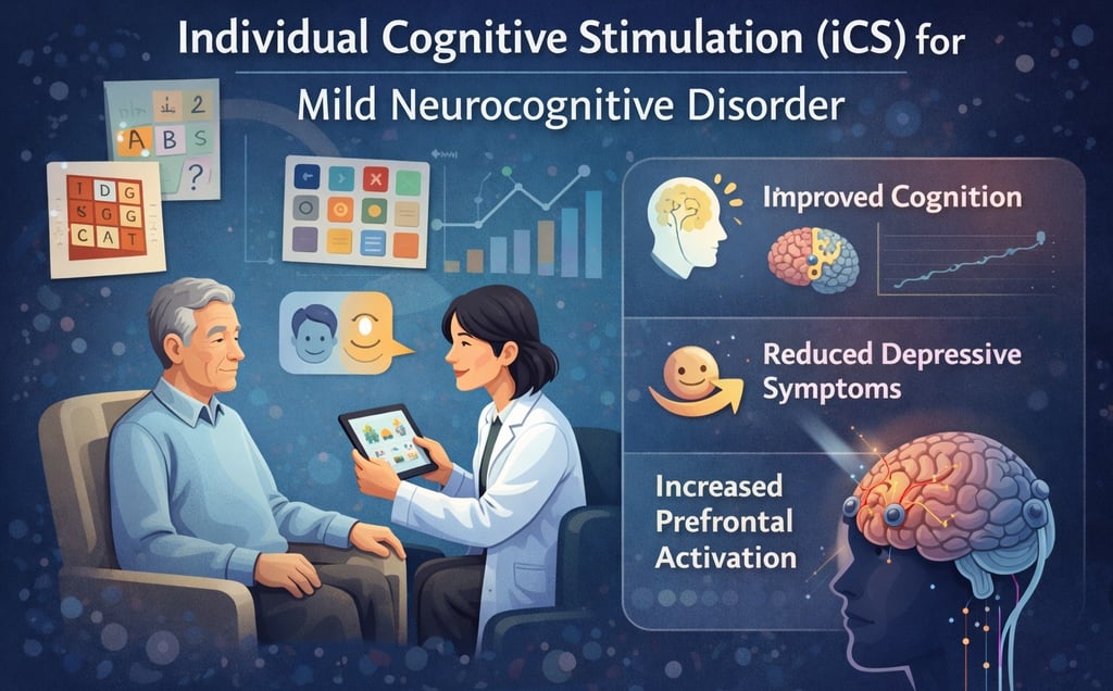 Clinical relevance: A structured, individualized cognitive stimulation protocol may offer dual benefits—supporting both cognitive performance (especially executive function) and mood—in older adults with mild NCD.