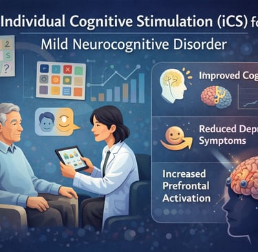 This paper evaluates whether an individual cognitive stimulation (iCS) program can benefit older adults diagnosed with mild neurocognitive disorder (mild NCD)—a stage marked by measurable cognitive decline that typically does not yet compromise basic daily independence. The authors highlight the growing prevalence of neurocognitive disorders with aging and the importance of non-pharmacological interventions to preserve cognitive function and emotional well-being.